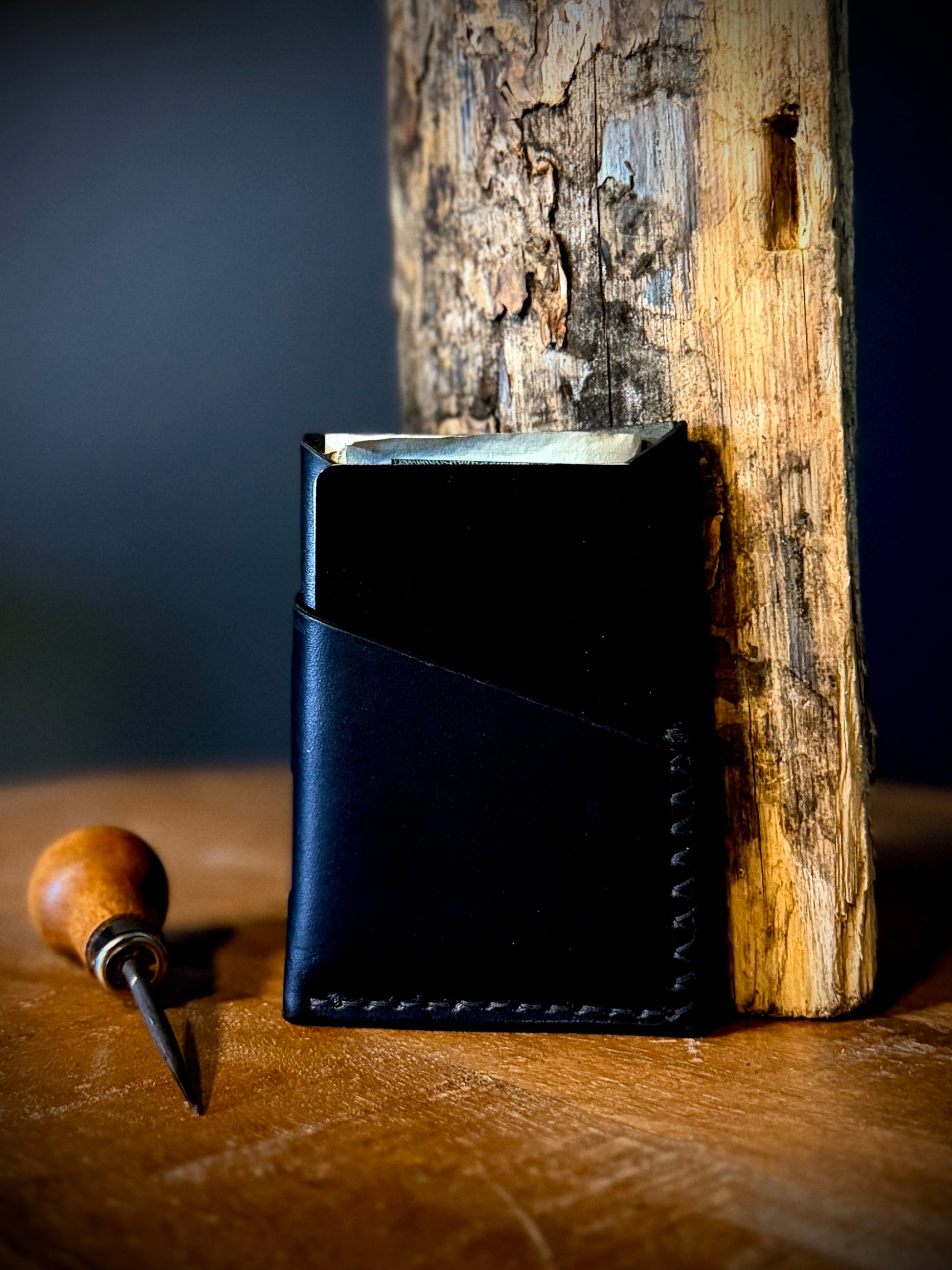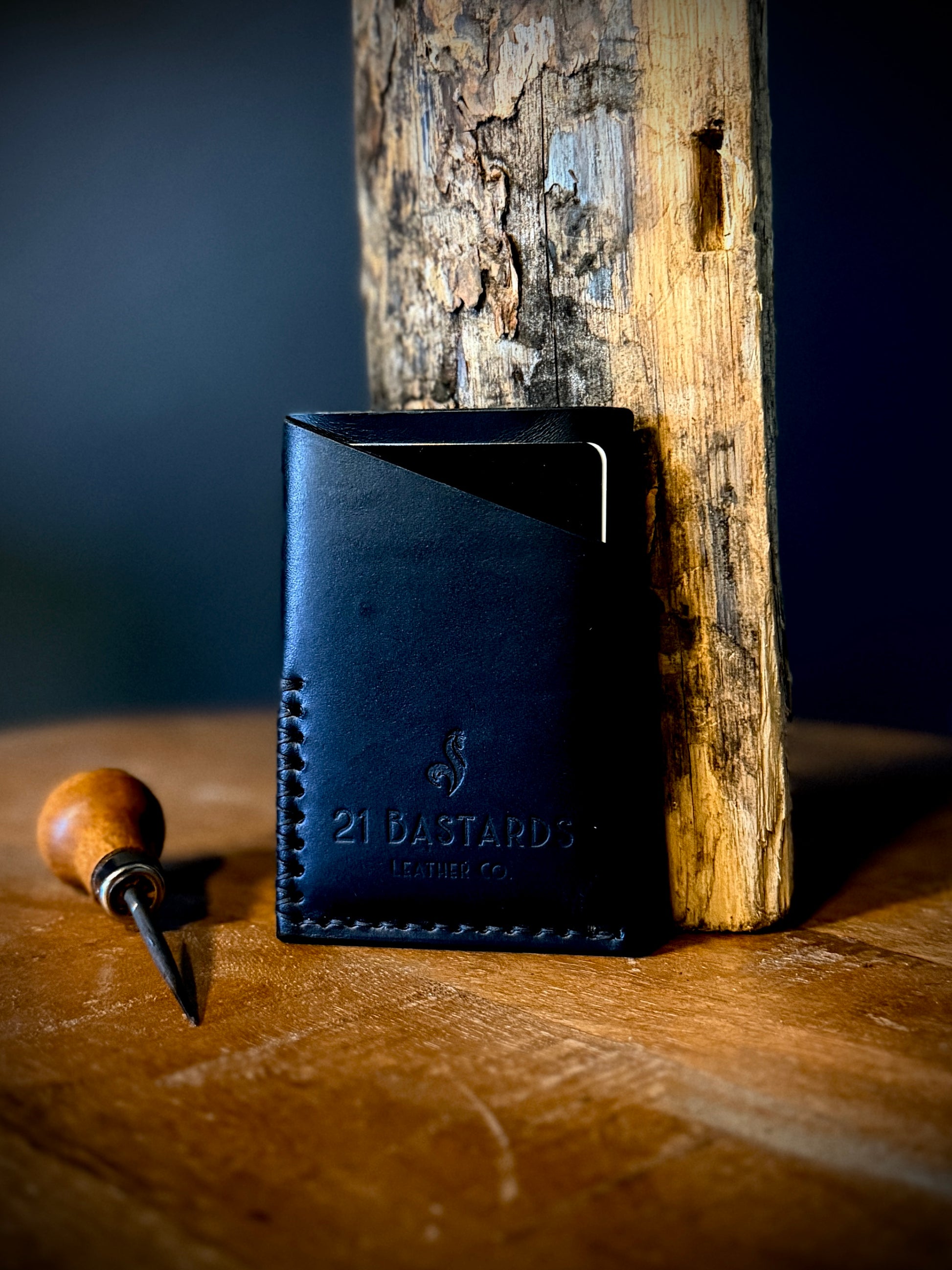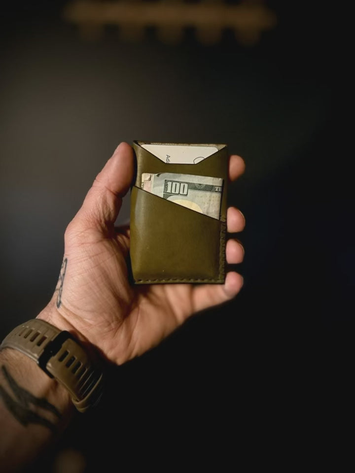 The Anvil is a handcrafted leather wallet built for everyday carry. Designed for front pocket use, it holds your essentials without the bulk — and gets better with age. Handmade in the USA using natural cowhide by an American Combat Veteran